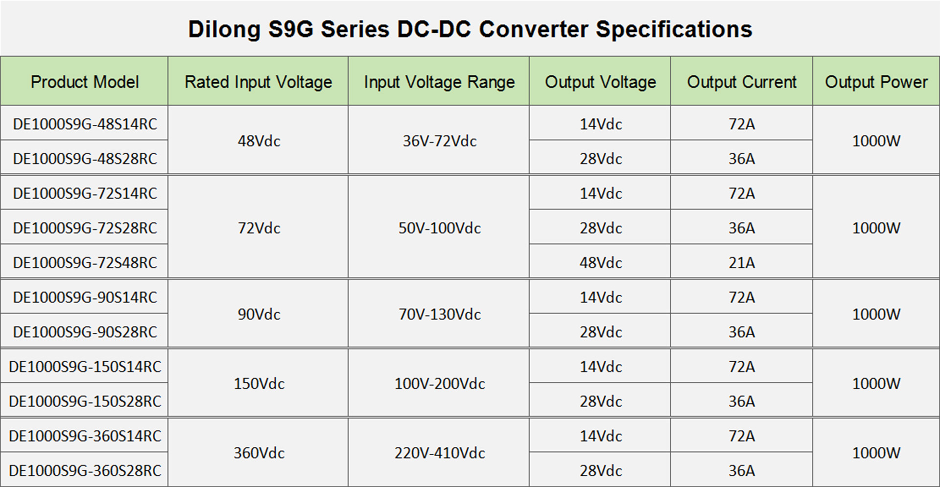 DE1000S9G Series 1kW DC DC Converter for EV |