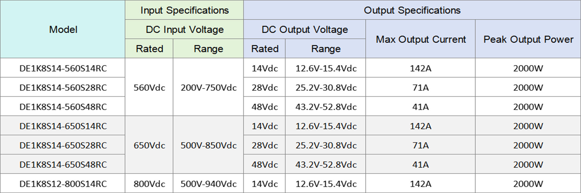 Dilong DE1K8S14 series 2kW open frame DC-DC converter module is a high-power, small-volume power converter specially designed for pure electric vehicles. The converter has wide input voltage range and of 200Vdc to 750Vdc, solving the problem of choosing multiple DC converters for different vehicle type, avoiding repeated design and achieving the purpose of generalization and modularization; It adopts digital processing technology, with CAN communication, able to report data to CAN bus and accept power on command of CAN bus at the same time, monitoring the working status of DCDC converter in real time.