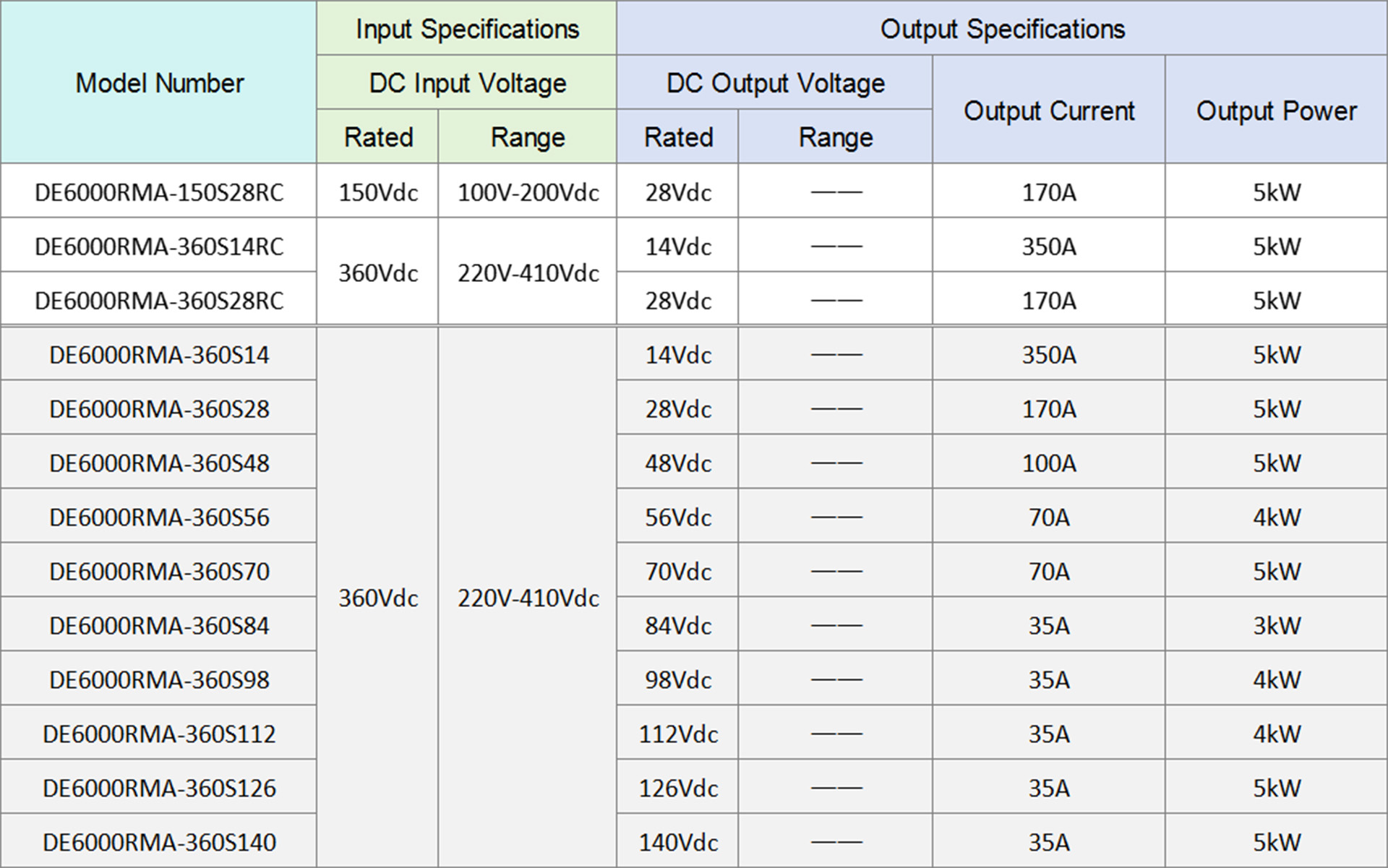 Output Voltage:14VDC, 28VDC, 48VDC, 56VDC, 70VDC, 84VDC, 98VDC, 112VDC, 126VDC, 140VDC